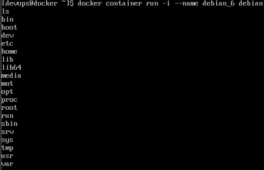 docker container run -i --name debian_6 debian