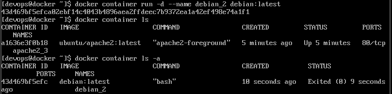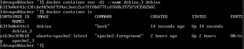 docker container run -t --name debian_7 debian