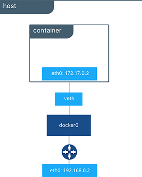 - Docker 내부에 네트워크를 구성하고 호스트의 인터페이스를 사용해서 외부 네트워크와 연결될 수 있는 네트워크