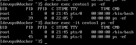 docker exec centos1 ps -ef (그런데 컨테이너 이미지에 따라서 ps 명령어가 설치 안되어있을 수도 있어)