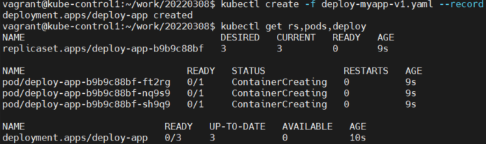 kubectl create -f deploy-myapp-v1.yaml --record