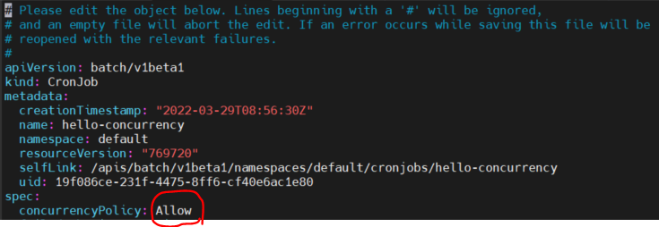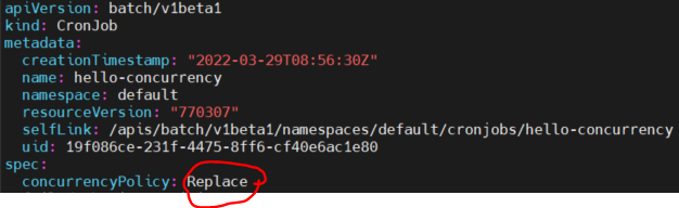 지금 concurrencyPolicy를 Forbid로 설정해놨잖아.
