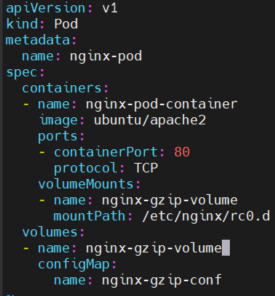- name: nginx-gzip-volume #(1. configMap에서 conf파일 가져와서 볼륨 만들고 여기서 만든 볼륨을)