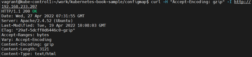 $ curl -H "Accept-Encoding: gzip" -I http://192.168.233.208
