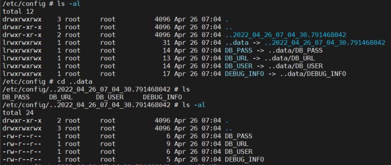 3) ..data 링크에 연결된 디렉토리 내 각 파일에 대한 링크를 마운트위치 내 생성